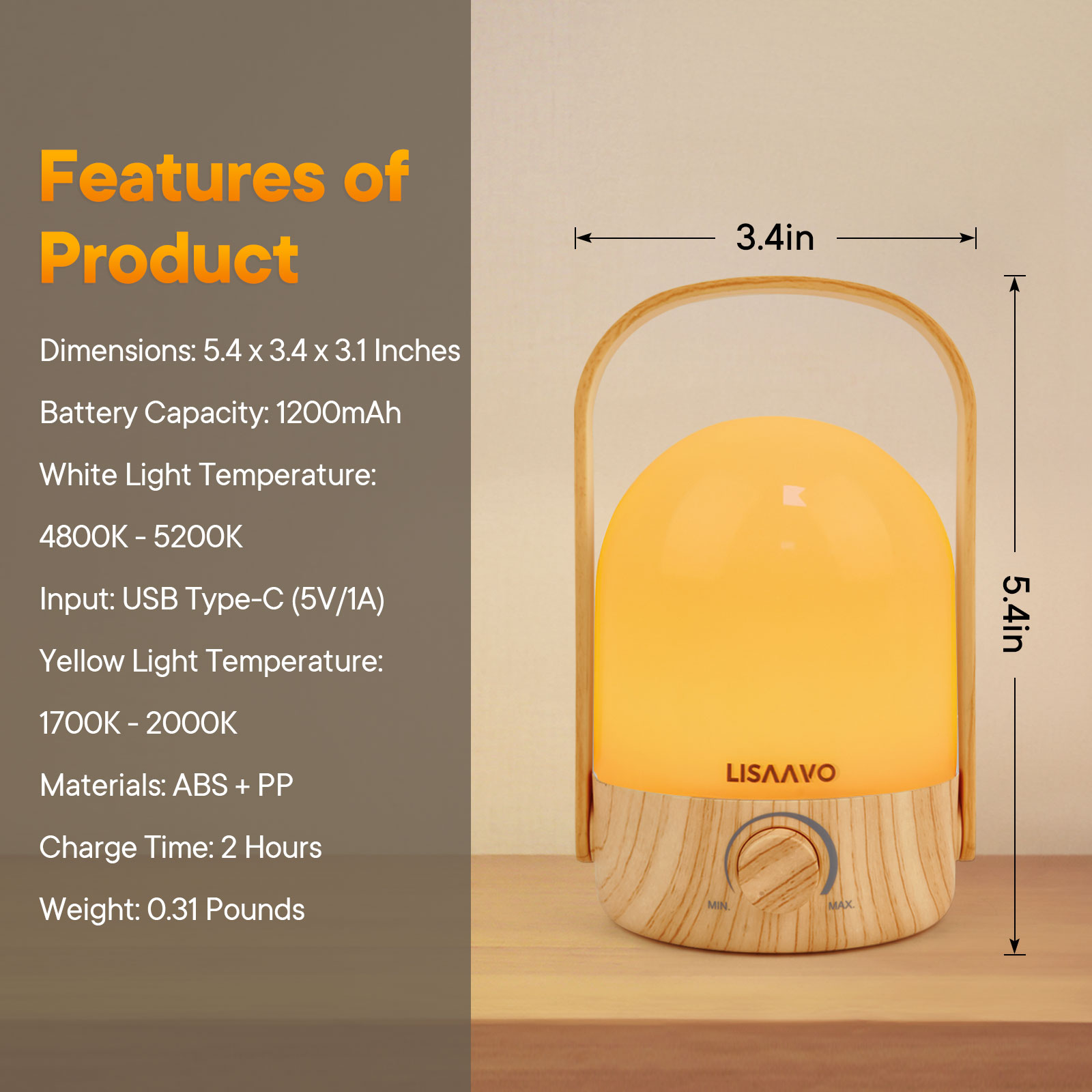 Charging Time:Max Mode-White(2 hours) Wood (6 hours)