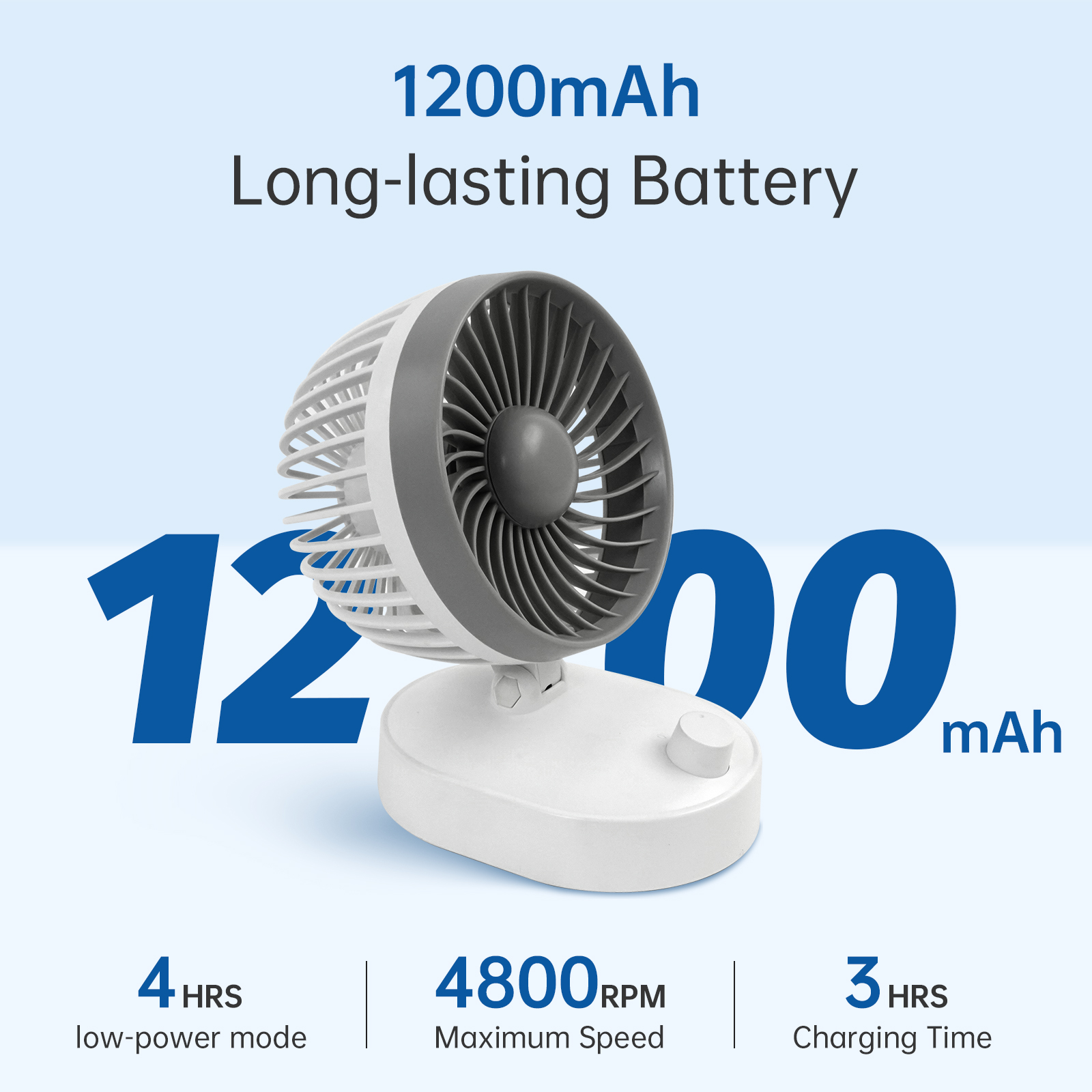 Maintaining this USB rechargeable fan is hassle-free thanks to its detachable front cover. Dust and debris can be removed quickly, keeping the fan operating efficiently over time.