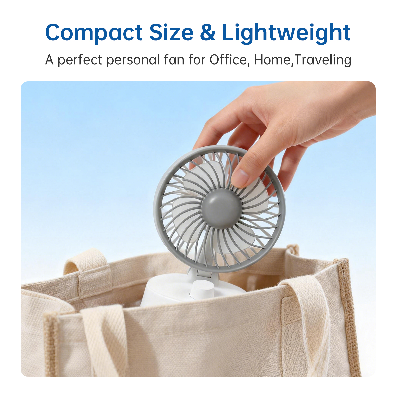 Weighing just 160 grams and measuring 100 × 92 × 132 mm, this portable mini desk fan fits effortlessly into any environment. Its compact footprint makes it perfect for desktops, kitchen counters, or bedside tables, while its sleek, modern look complements any décor.